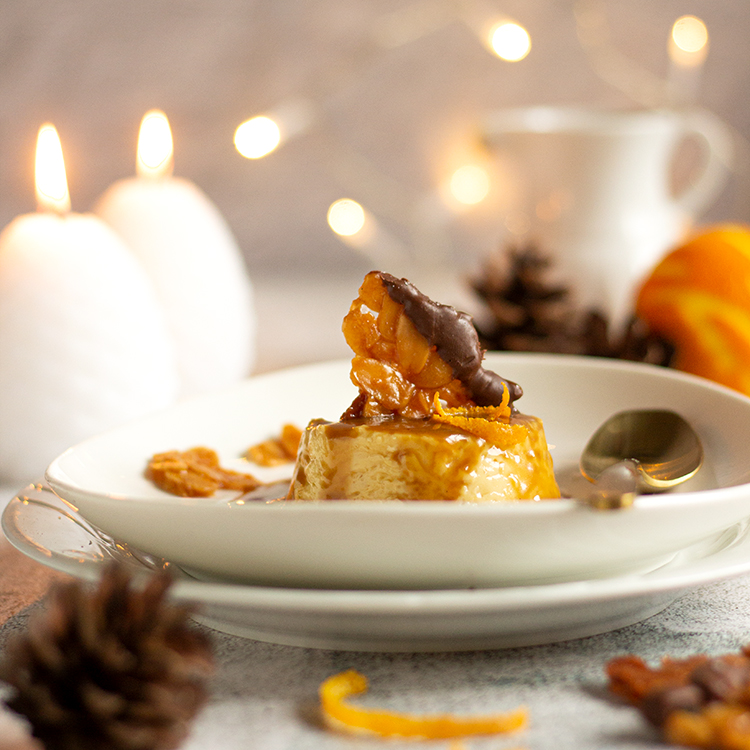 Ein leichtes Dessert ist es wahrlich nicht, aber dafür unglaublich lecker und ein echtes Feuerwerk an winterlichen Aromen: da ist Orange, Vanille und Karamell, dazu Mandel und auch ein bisschen Schokolade. Der Flan ist die westeuropäische Variante von Pudding – er wird im Wasserbad gegart und ist daher besonders flaumig. Serviert ihn als Dessert im winterlichen Menü oder gönnt ihn euch an einem gemütlichen Adventabend.