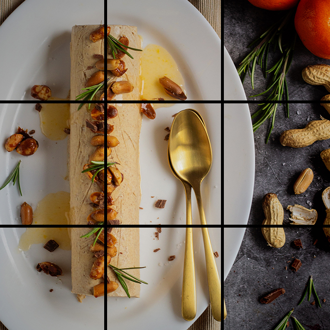 Die Drittelregel ist eine der Techniken, die sich neben den Foodfotografien auch für sämtliche andere Foto-Themen eignen: für Naturfotos, Fotos von Personen, etc. Für Foodfotos ist die Drittelregel besonders gut geeignet, weil häufig einige Elemente auf dem Foto unterzubringen sind: das Gericht, vielleicht noch eine Schüssel mit Beilage oder Sauce, einzelne Zutaten, Besteck,… Die Drittelregel hilft herauszufinden, wo die Elemente gut platziert werden, sodass das Foto ansprechend wirkt.