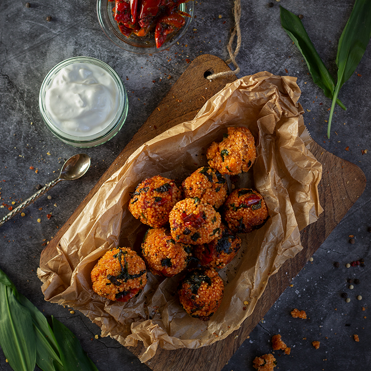 Ein Flatlay ist das Mittel der Wahl, wenn du möglichst viele Dinge zu zeigen hast: Zutaten, kleine Schälchen mit Saucen, Deko- und Streuzutaten. Anders herum formuliert: hier ist es ein Leichtes, mit vielen Zutaten die Szene zu unterstreichen. Auf der flachen Unterlage ist Platz für reichlich Props und Zutaten.
