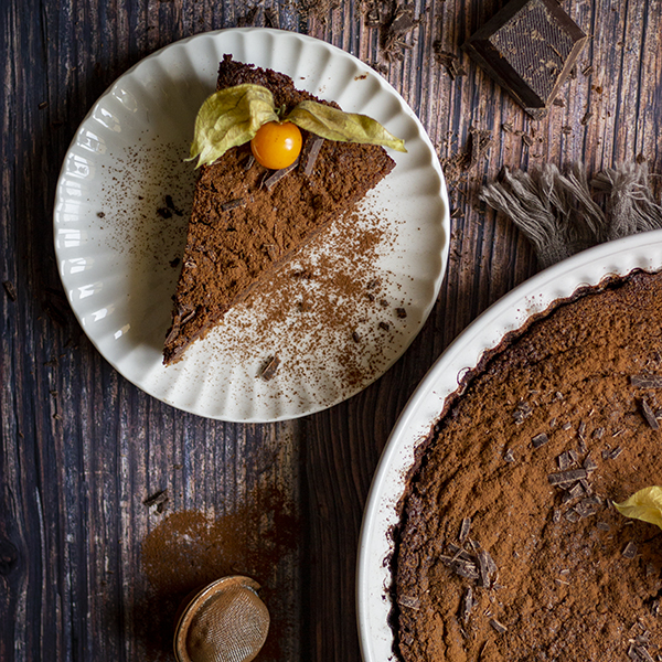 - Die Schokolademischung zur Eimischung geben und die Masse in eine Tarteform füllen – diese vorab leicht befetten und bemehlen.