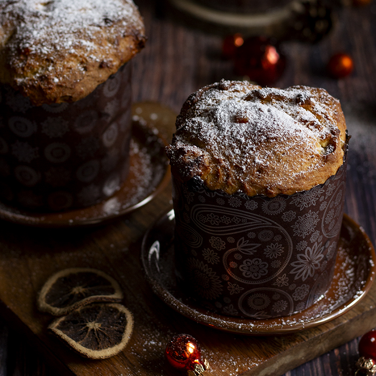 Panettone ist ein italienischer Weihnachtskuchen auf Basis eines luftigen Germteigs (Hefeteigs). Reichlich weihnachtliche Aromen und kandierte Früchte runden den Teig ab. Gebacken wird in typisch zylindrischen Papiermanschetten, die ebenso wie der hohe Kuchen ein echter Hingucker sind.