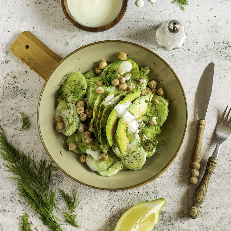 Gurkensalat mit Kichererbsen und Avocado