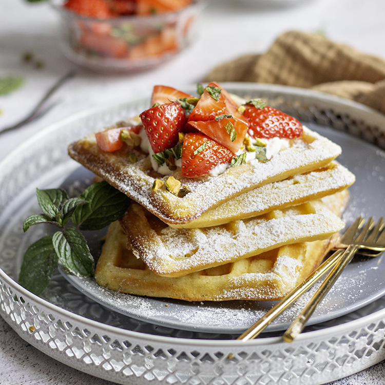 Wann essen wir gerne Waffeln? Genau, eigentlich an allen Tagen, aber besonders dann, wenn es einen schönen Anlass gibt und man jemand anderem eine kulinarische Freude bereiten möchte – zum Beispiel zum Muttertag! Über Waffeln freut sich jede Mama und jede Frau, wenn sie zum Frühstück frisch gebacken serviert werden.