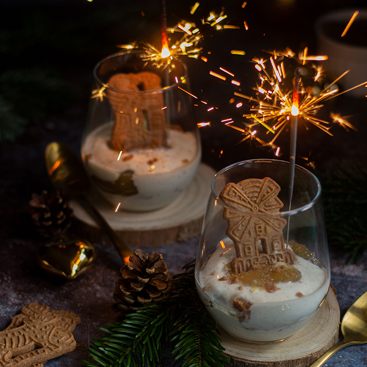 Weihnachtliche Desserts können auch gesund sein – sofern man das von Desserts behaupten kann. Eine Creme auf Joghurtbasis passt sehr gut zu winterlichen Aromen wie Vanille, Apfel und Spekulatius. Das Ganze schmeckt nicht zu süß und kann locker noch als Nachtisch im mehrgängigen Weihnachtsmenü gegessen werden.