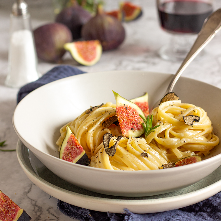Pasta in Blauschimmelkäse-Sauce mit Feigen und Trüffel